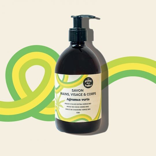 Savon visage, main et corps-pamplemousse acidulé à l'huile d'olive bio extra vierge, à l'huile de coco bio, à l'huile de chanvre bio et au CBD.-500 ml